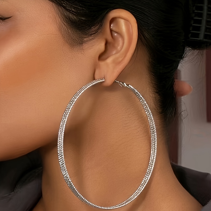 - Boho Vibes: Combine textured silver necklaces, chunky rings, and your 70mm hoops for an earthy, artistic ensemble.